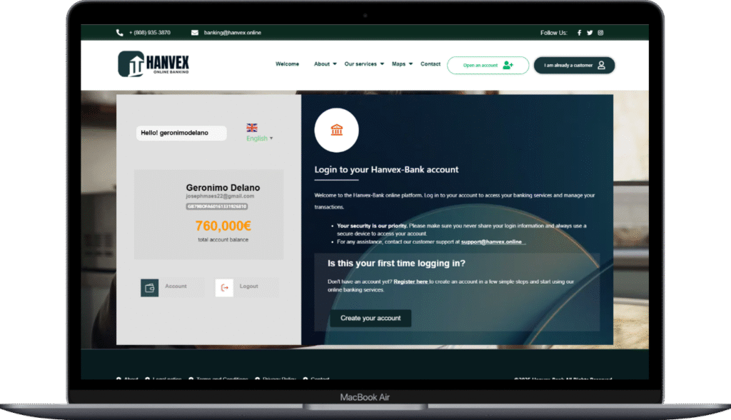 Chez Hanvex-Bank , nous sommes déterminés à vous offrir une expérience bancaire en ligne simple, sécurisée et personnalisée. Grâce à notre plateforme e-banking, vous pouvez gérer vos comptes et effectuer vos transactions en toute simplicité, où que vous soyez.